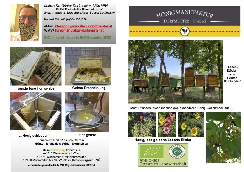 Zwischen summenden Wiesen, alten Obstbäumen und dem Duft blühender Kräuter entsteht ein Produkt, das weit mehr ist als nur ein Brotaufstrich: Honig. Und in der Honigmanufaktur Dorfmeister, am Rande Wiens, dem Herzen Burgenlands und dem Fuße des Schneebergs, wird er mit ganz besonderer Hingabe gewonnen.